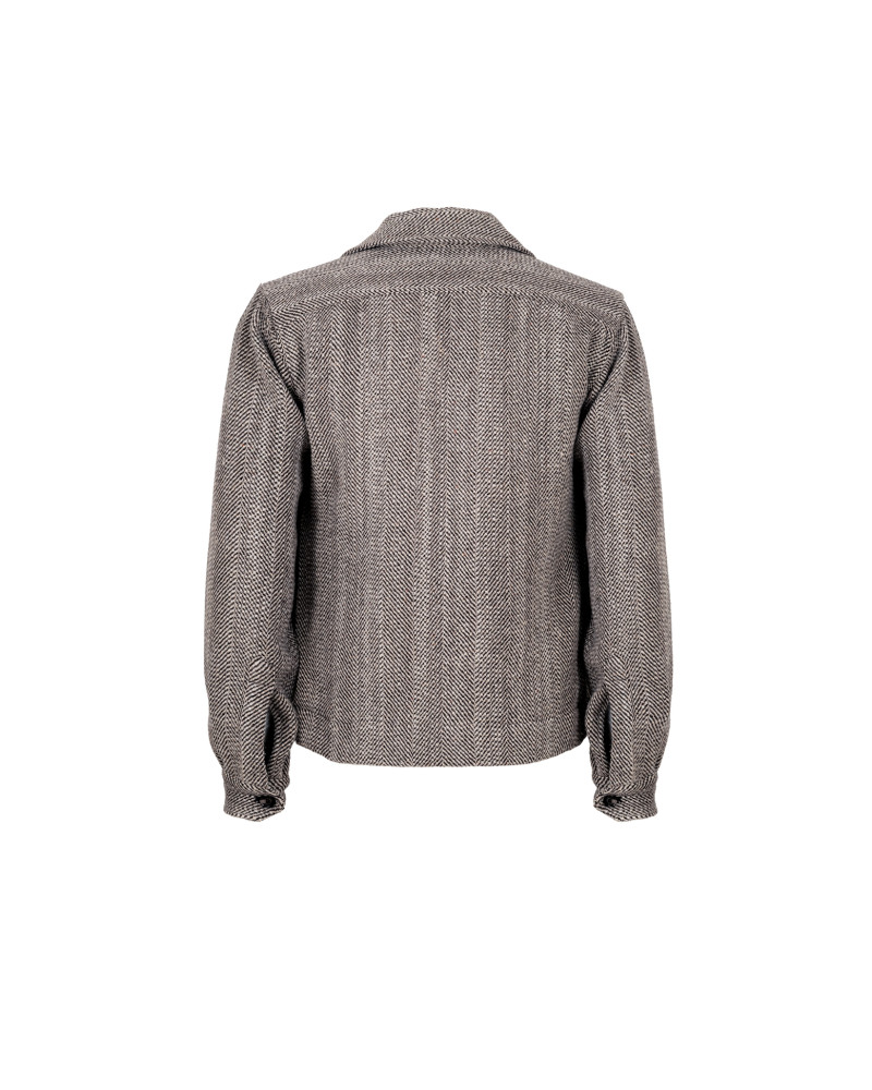 Bomber Jacket in Beige and Brown Herringbone