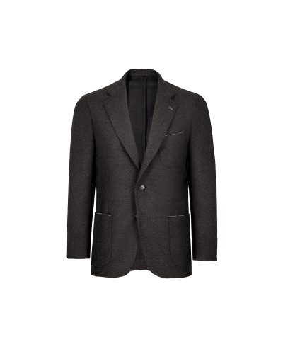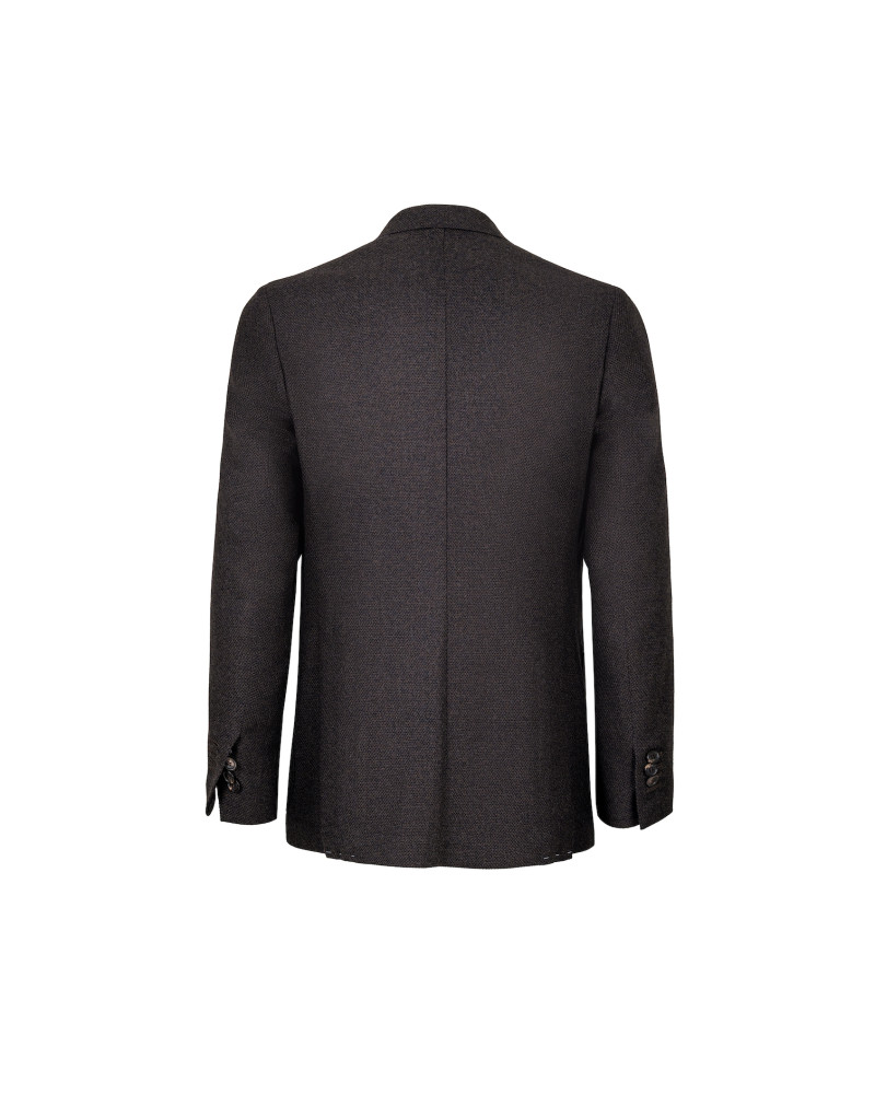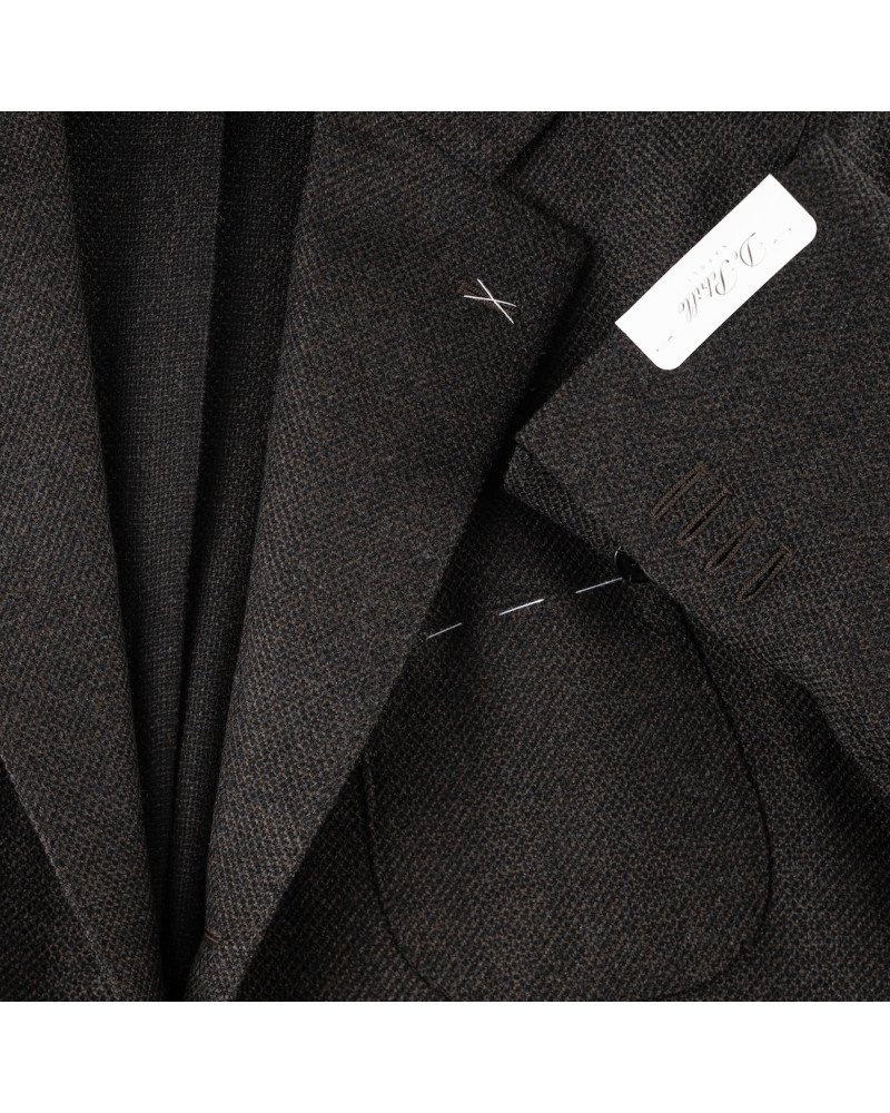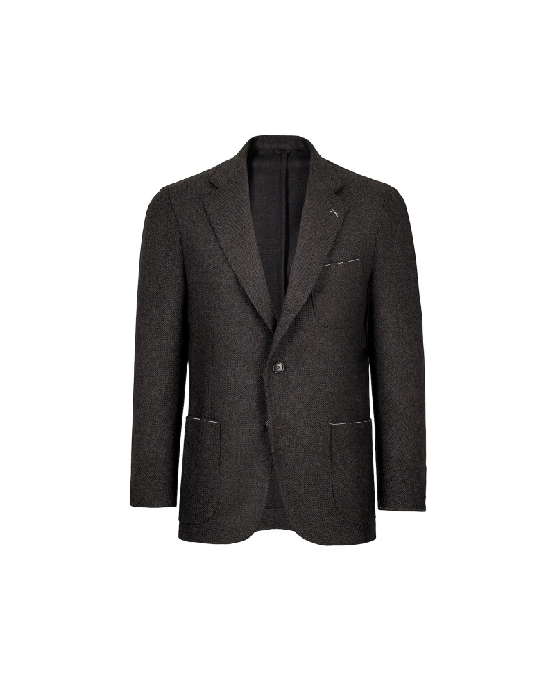 The Coroglio single-breasted jacket embodies contemporary elegance born from the meeting of Italian tailoring tradition and modern style. Its muddy grey-brown shade, understated yet distinctive, is enriched by the houndstooth texture, giving the fabric depth and character.
