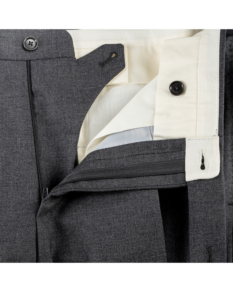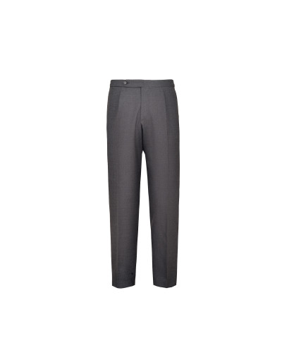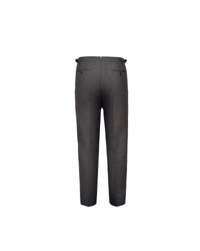 Crafted from the same exclusive gunmetal grey wool fabric as the Sorrento jacket, these trousers combine sharp tailoring with a clean, formal aesthetic. The B1C model features a single pleat for subtle volume and an elegant silhouette. The absence of belt loops enhances the minimalist design, ideal for pairing with braces or internal side adjusters. Perfect worn as part of a suit or styled separately for a refined, modern look.